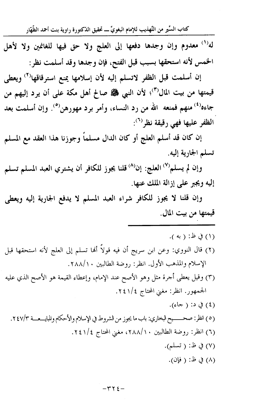 (2) قَالَ النَّوَوِيّ: وَعَن ابْن سُرَيج أَن فِيهِ قولا أَنَّهَا تسلم إِلَى العلج لِأَنَّهُ اسْتحقَّهَا قبل الْإِسْلَام وَالْمذهب الأول. انْظُر: رَوْضَة الطالبين 10/288.