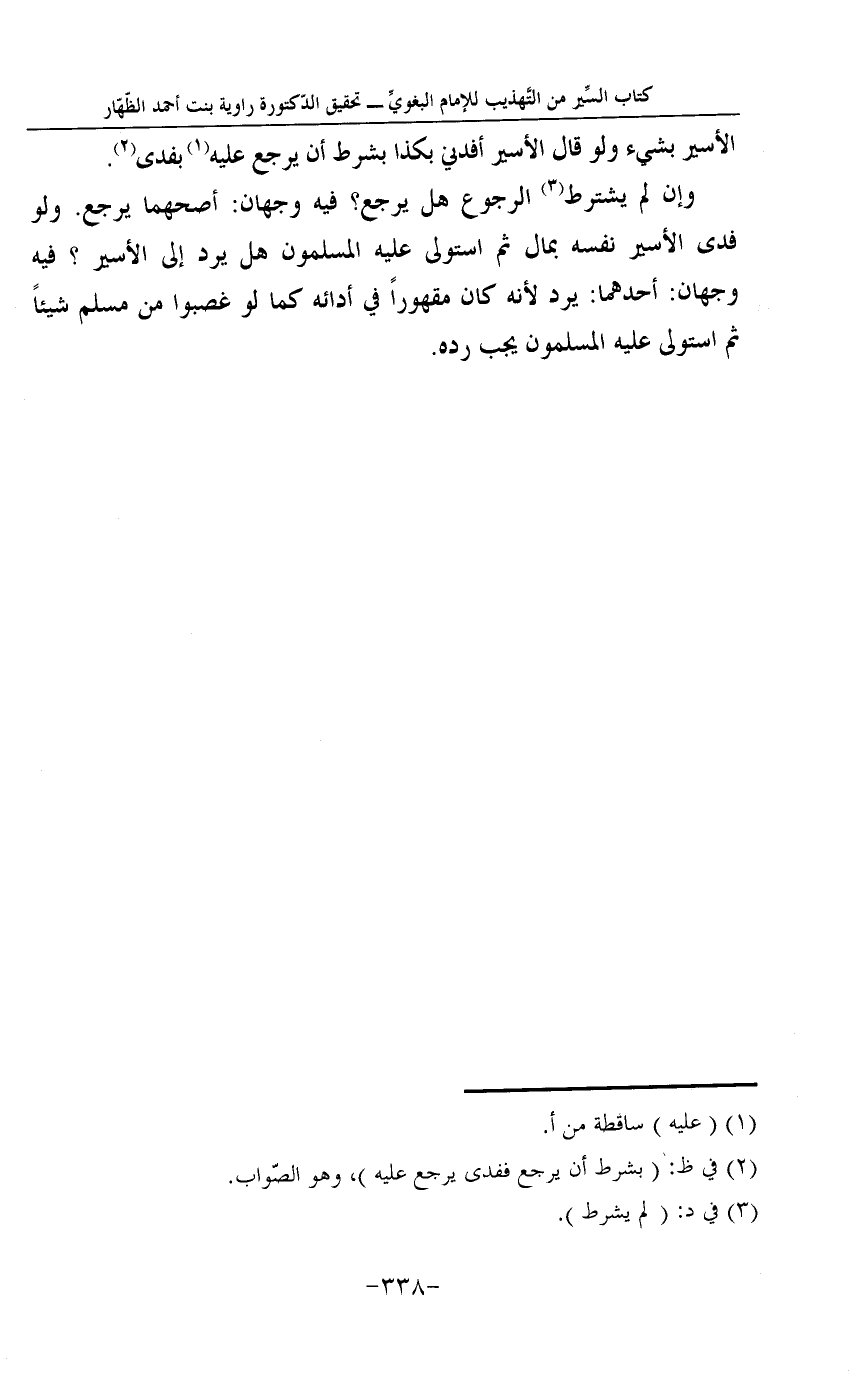 وَإِن لم يشْتَرط3 الرُّجُوع هَل يرجع؟ فِيهِ وَجْهَان: أصَحهمَا يرجع. وَلَو فدى الْأَسير نَفسه بِمَال ثمَّ استولى عَلَيْهِ الْمُسلمُونَ هَل يرد إِلَى الْأَسير؟ فِيهِ وَجْهَان: أَحدهمَا: يرد لِأَنَّهُ كَانَ مقهوراً فِي أَدَائِهِ كَمَا لَو غصبوا من مُسلم شَيْئا ثمَّ استولى عَلَيْهِ الْمُسلمُونَ يجب رده.