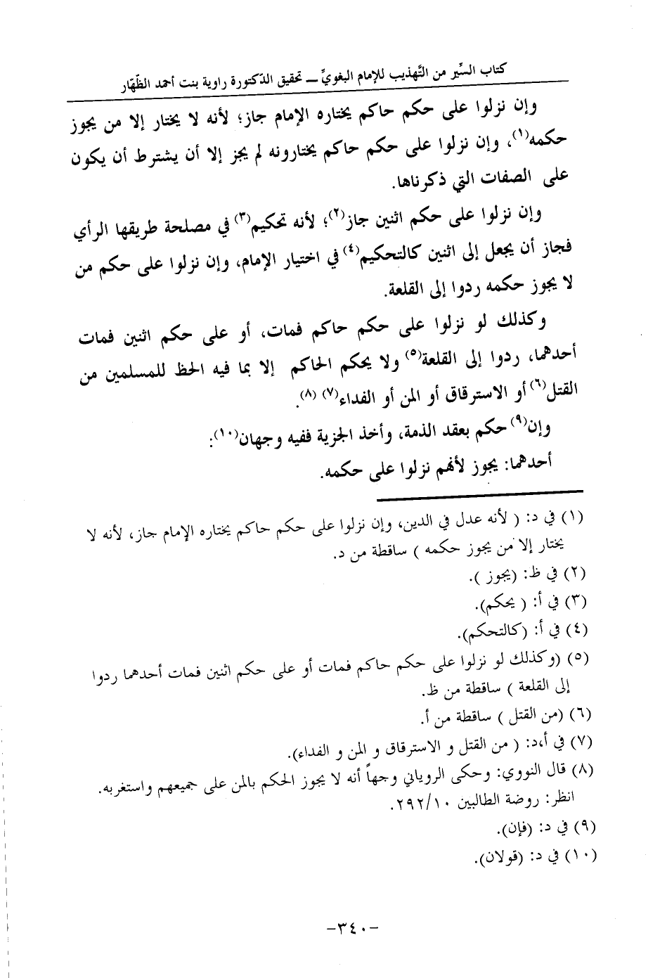 8 - قَالَ النَّوَوِيّ: "وَحكى الرَّوْيَانِيّ وَجها أَنه لَا يجوز الحكم بالمن على جَمِيعهم وَاسْتَغْرَبَهُ". انْظُر: رَوْضَة الطالبين 10/292.