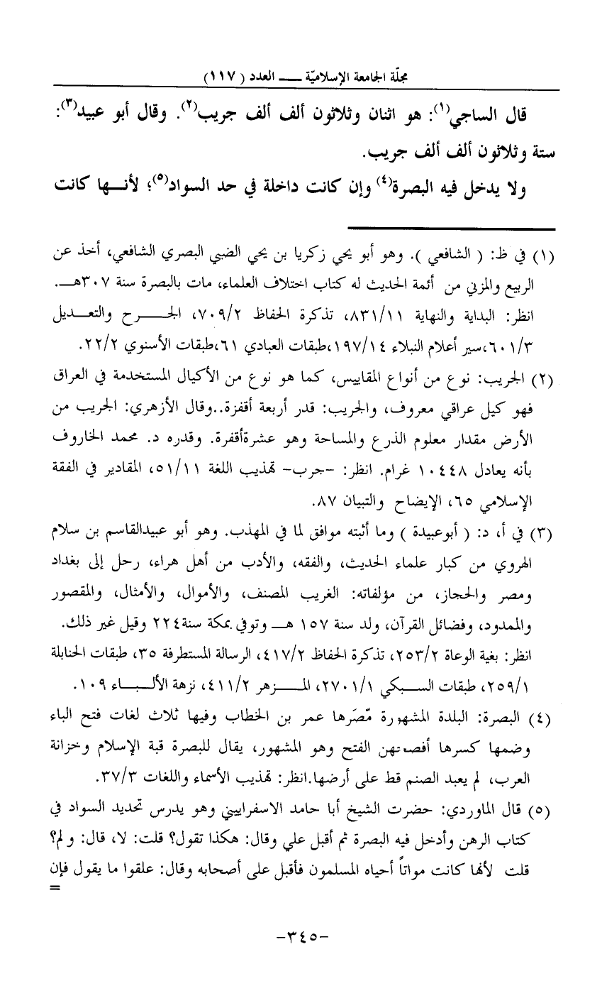 قَالَ السَّاجِي1: "هُوَ اثْنَان وَثَلَاثُونَ ألف ألف جريب"2. وَقَالَ أَبُو عبيد3: "سِتَّة وَثَلَاثُونَ ألف ألف جريب".