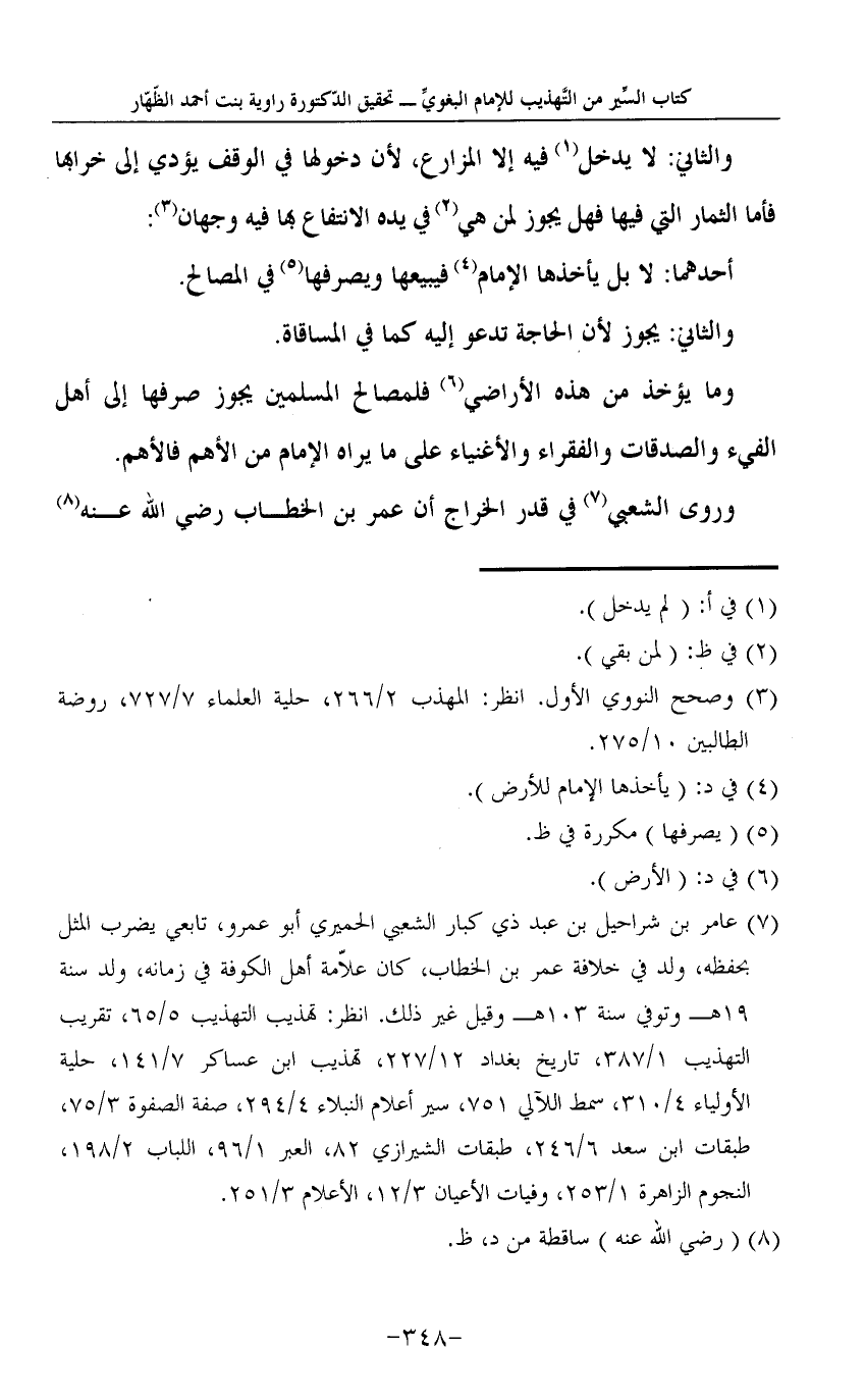 7 - عَامر بن شرَاحِيل بن عبد ذِي كبار الشّعبِيّ الْحِمْيَرِي أَبُو عَمْرو، تَابِعِيّ يضْرب الْمثل بحفظه، ولد فِي خلَافَة عمر بن الْخطاب، كَانَ علاّمة أهل الْكُوفَة فِي زَمَانه، ولد سنة 19هـ وَتُوفِّي سنة 103هـ وَقيل غير ذَلِك. انْظُر: تَهْذِيب التَّهْذِيب 5/65، تقريب التَّهْذِيب 1/387، تَارِيخ بَغْدَاد 12/227، تَهْذِيب ابْن عَسَاكِر 7/141، حلية الْأَوْلِيَاء 4/310، سمط اللآلي 751، سير أَعْلَام النبلاء 4/294، صفة الصفوة 3/75، طَبَقَات ابْن سعد 6/246، طَبَقَات الشِّيرَازِيّ 82، العبر 1/96، اللّبَاب 2/198، النُّجُوم الزاهرة 1/253، وفيات الْأَعْيَان 3/12، الْأَعْلَام 3/251.