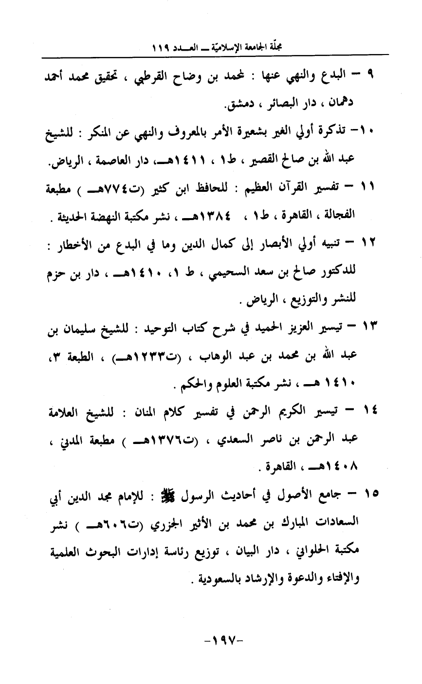15 – جامع الأصول في أحاديث الرسول صلى الله عليه وسلم: للإمام مجد الدين أبي السعادات المبارك بن محمد بن الأثير الجزري "ت606هـ" نشر مكتبة الحلواني، دار البيان، توزيع رئاسة إدارات البحوث العلمية والإفتاء والدعوة والإرشاد بالسعودية.