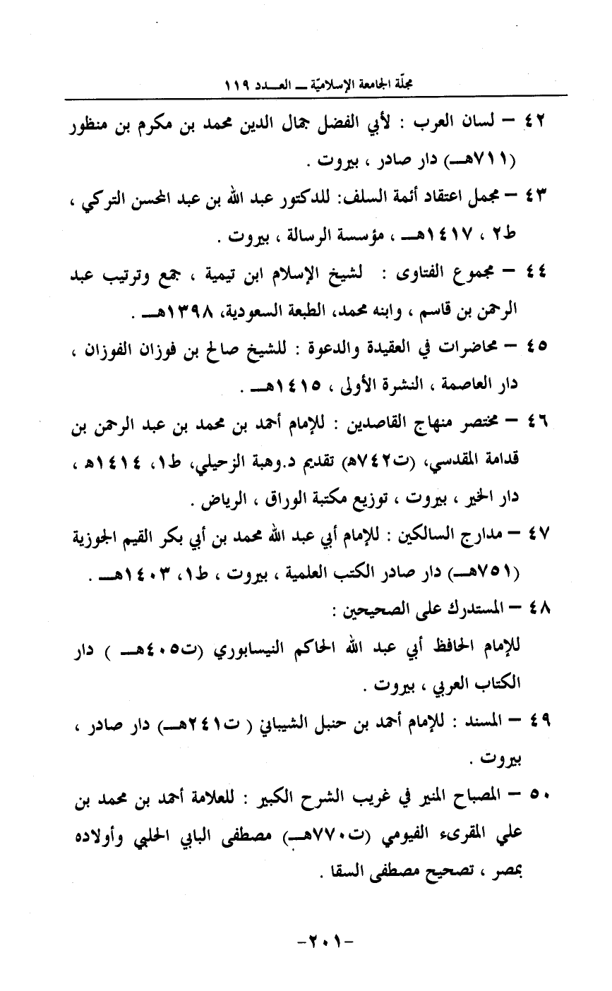 47 – مدارج السالكين: للإمام أبي عبد الله محمد بن أبي بكر القيم الجوزية "751هـ" دار صادر الكتب العلمية، بيروت، ط1، 1403هـ.