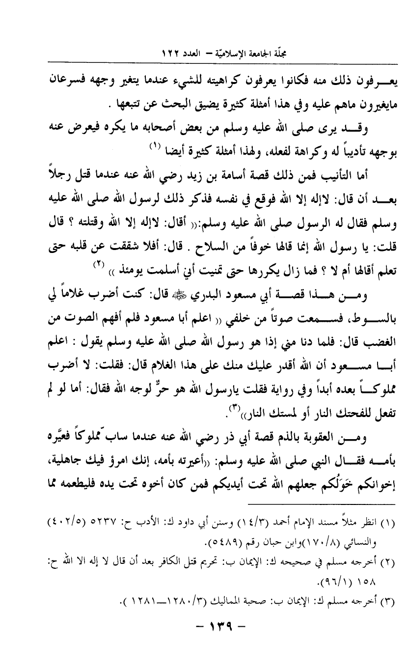 (2) أخرجه مُسلم فِي صَحِيحه ك: الْإِيمَان ب: تَحْرِيم قتل الْكَافِر بعد أَن قَالَ لَا إِلَه الا الله ح: 15 {1/96) .