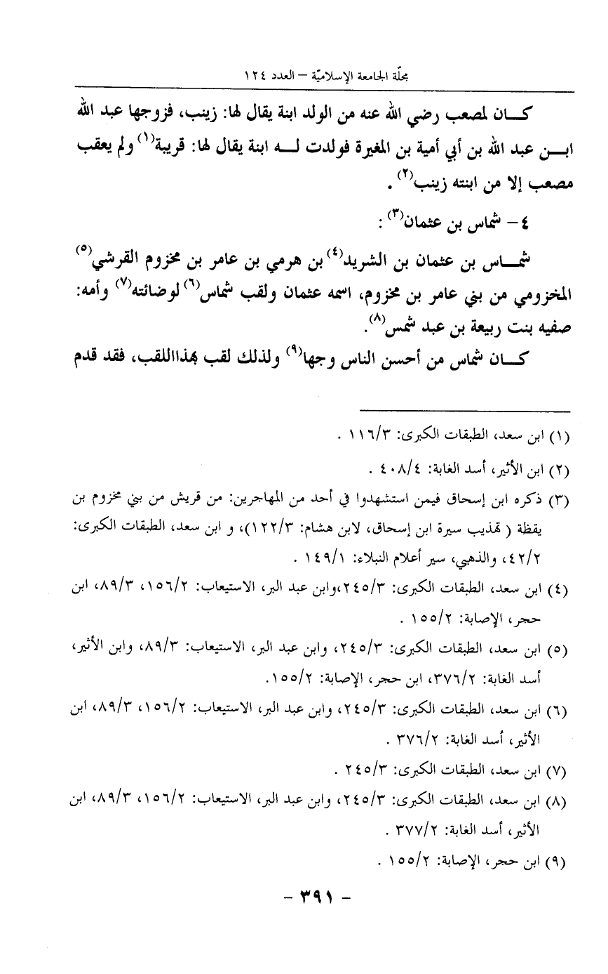 3 ابن سعد، الطبقات الكبرى: 3/245، وابن عبد البر، الاستيعاب: 3/89، وابن الأثير، أسد الغابة: 2/376، ابن حجر، الإصابة: 2/155.
