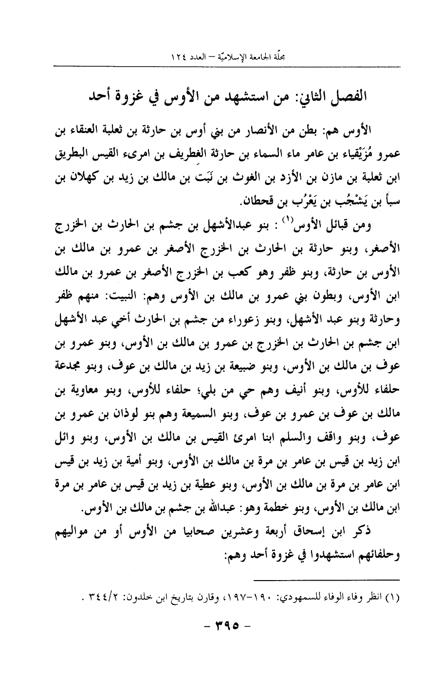 الفصل الثاني: من استشهد من الأوس في غزوة أحد
