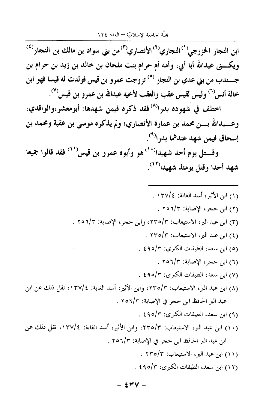 10 ابن عبد البر، الاستيعاب: 3/235، وابن الأثير، أسد الغابة: 4/137، نقل ذلك عن ابن عبد البر الحافظ ابن حجر في الإصابة: 3/256.