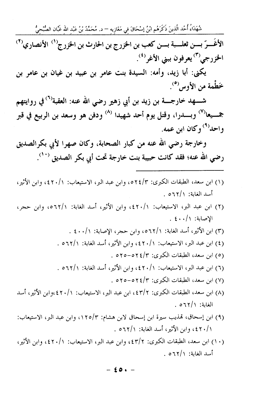 9 ابن إسحاق، تهذيب سيرة ابن إسحاق لابن هشام: 3/125، وابن عبد البر، الاستيعاب: 1/420، وابن الأثير، أسد الغابة: 1/562.
