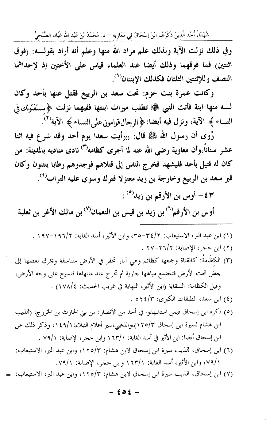 1 ذكره ابن إسحاق فيمن استشهدوا في أحد من الأنصار: من بني الحارث بن الخزرج، (تهذيب ابن هشام لسيرة ابن إسحاق 3/125) ،والذهبي، سير أعلام النبلاء:1/149، وذكر ذلك عن ابن إسحاق أيضا: ابن الأثير في أسد الغابة: 1/163 وابن حجر، الإصابة: 1/79.