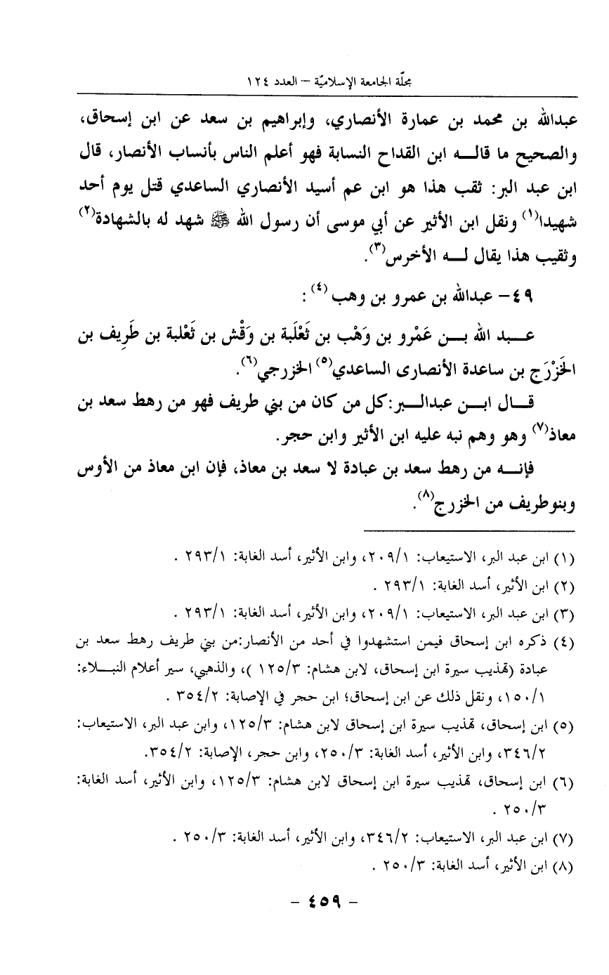 2 ابن إسحاق، تهذيب سيرة ابن إسحاق لابن هشام: 3/125، وابن عبد البر، الاستيعاب: 2/346، وابن الأثير، أسد الغابة: 3/250، وابن حجر، الإصابة: 2/354.
