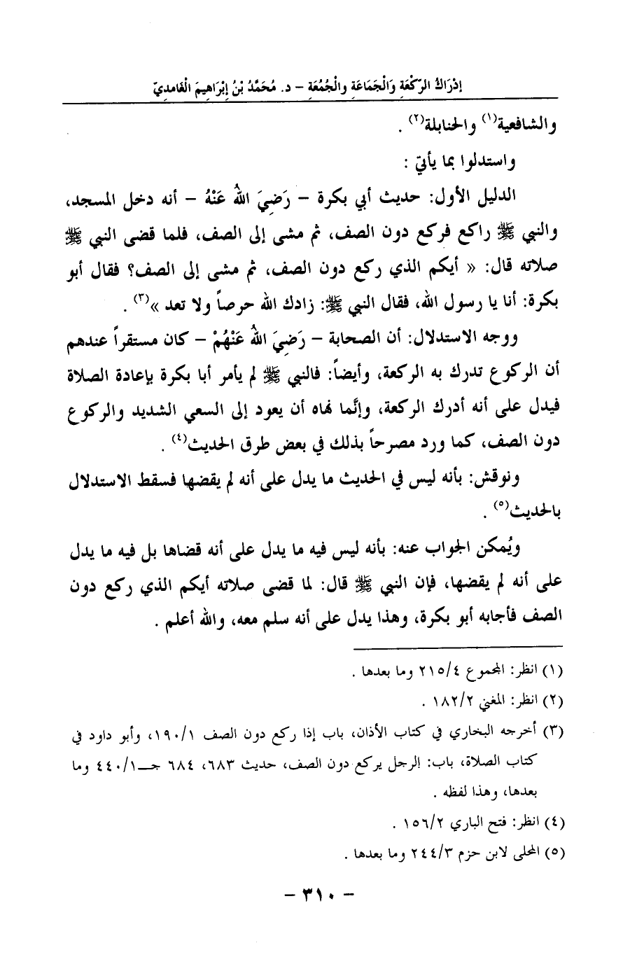 (3) أخرجه البخاري في كتاب الأذان، باب إذا ركع دون الصف 1/190، وأبو داود في كتاب الصلاة، باب: الرجل يركع دون الصف، حديث 683، 684 جـ1/440 وما بعدها، وهذا لفظه.