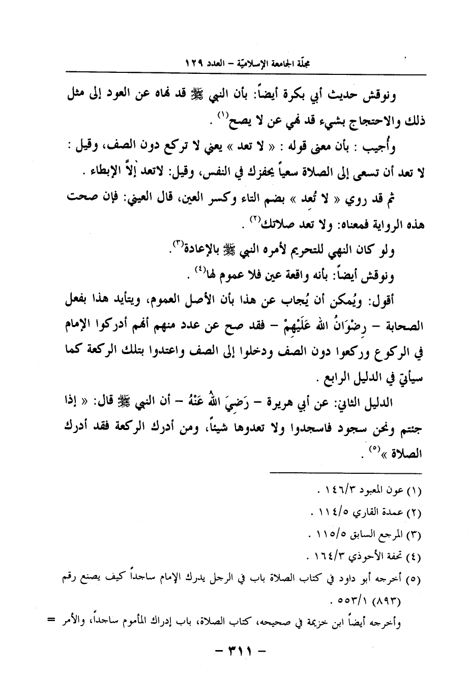 (5) أخرجه أبو داود في كتاب الصلاة باب في الرجل يدرك الإمام ساجداً كيف يصنع رقم (893) 1/553.