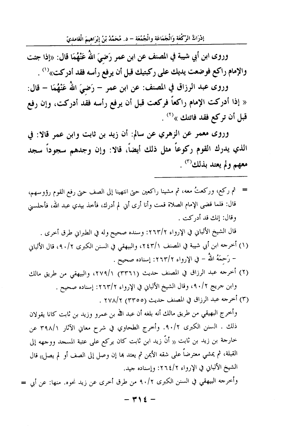 (2) أخرجه عبد الرزاق في المصنف حديث (3361) 1/279، والبيهقي من طريق مالك وابن جريج 2/90، وقال الشيخ الألباني في الإرواء 2/263: إسناده صحيح.