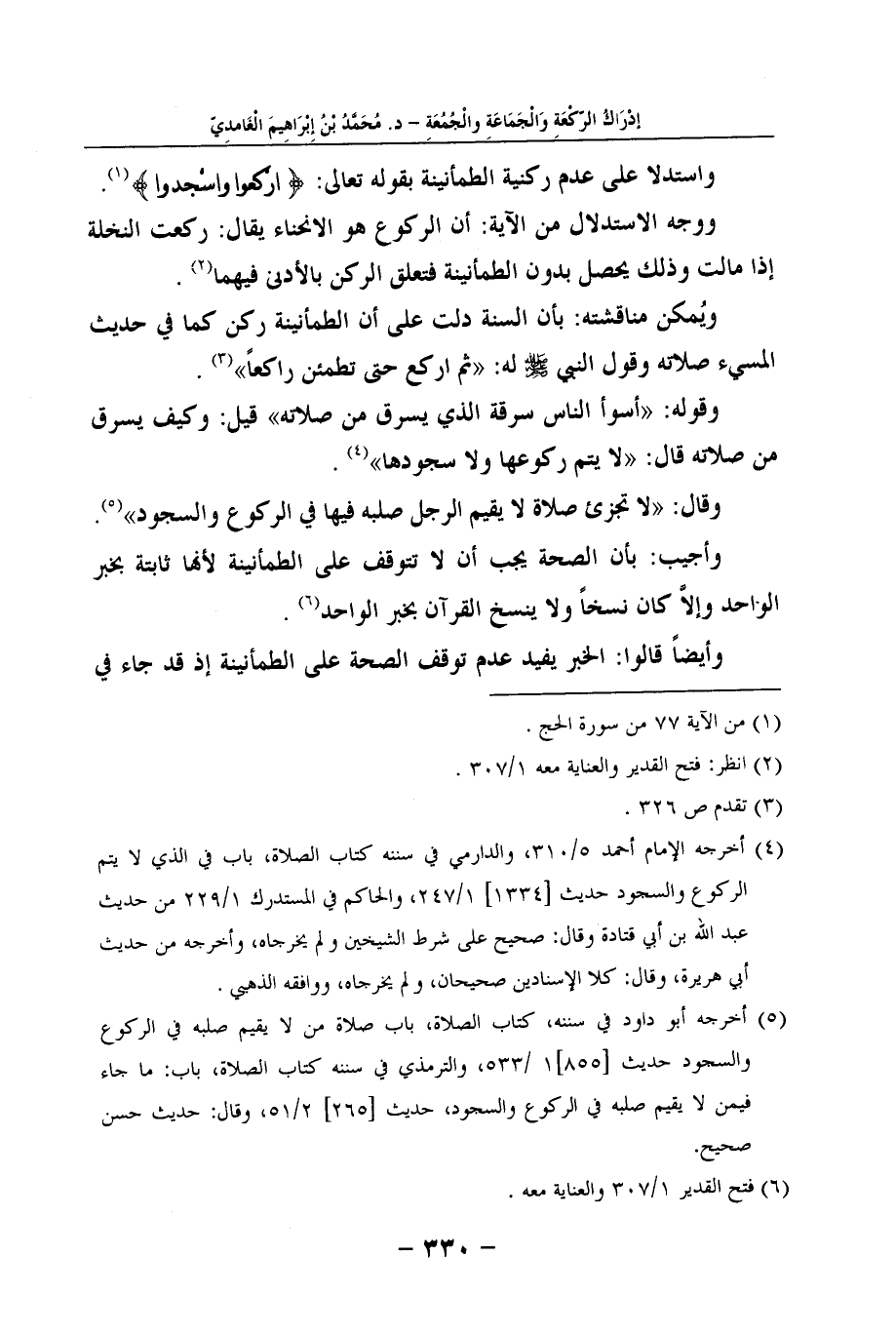 (5) أخرجه أبو داود في سننه، كتاب الصلاة، باب صلاة من لا يقيم صلبه في الركوع والسجود حديث [855] 1 /533، والترمذي في سننه كتاب الصلاة، باب: ما جاء فيمن لا يقيم صلبه في الركوع والسجود، حديث [265] 2/51، وقال: حديث حسن صحيح.