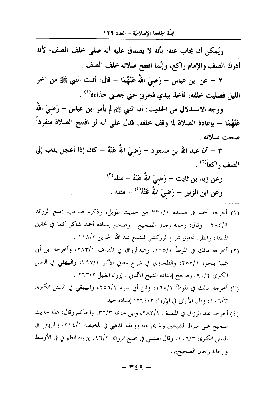 (4) أخرجه عبد الرزاق في المصنف 1/283، وابن خزيمة 3/32، والحاكم وقال: هذا حديث صحيح على شرط الشيخين ولم يخرجاه ووافقه الذهبي في تلخيصه 1/214، والبيهقي في السنن الكبرى 3/106، وقال الهيثمي في مجمع الزوائد 2/96: ((رواه الطبراني في الأوسط ورجاله رجال الصحيح)) .