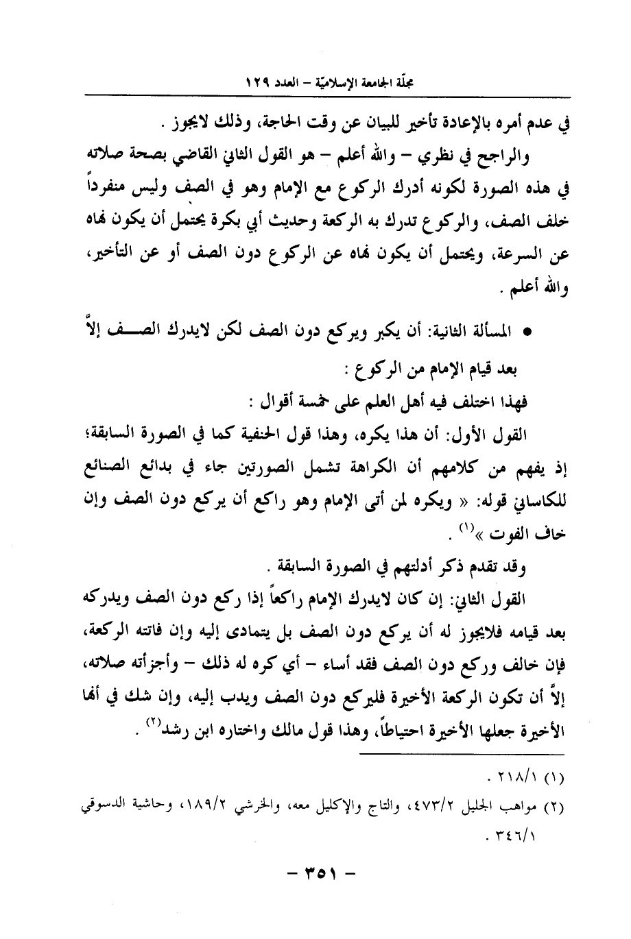 (2) مواهب الجليل 2/473، والتاج والإكليل معه، والخرشي 2/189، وحاشية الدسوقي 1/346.
