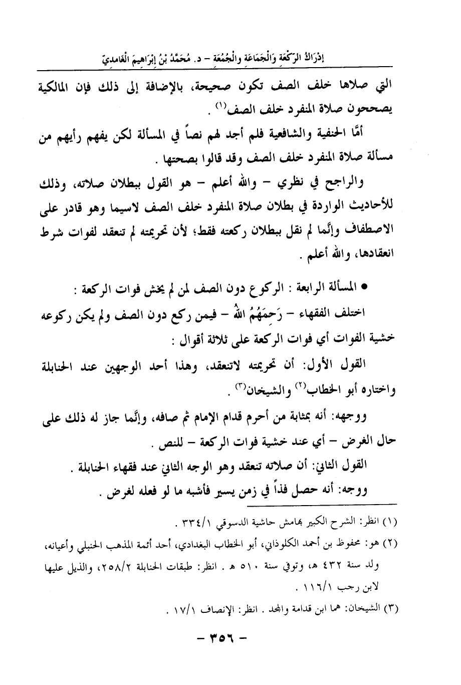* المسألة الرابعة: الركوع دون الصف لمن لم يخش فوات الركعة: