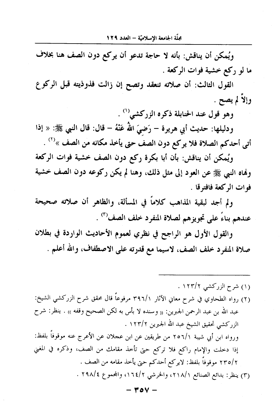(2) رواه الطحاوي في شرح معاني الآثار 1/396 مرفوعاً قال محقق شرح الزركشي الشيخ: عبد الله بن عبد الرحمن الجبرين: ((وسنده لا بأس به لكن الصحيح وقفه)) . ينظر: شرح الزركشي تحقيق الشيخ عبد الله الجبرين 2/123.