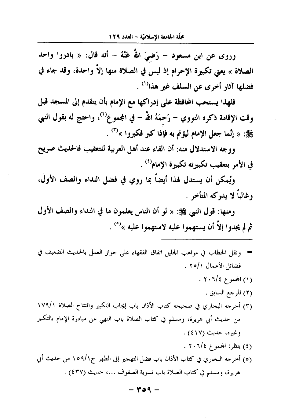 (5) أخرجه البخاري في كتاب الأذان باب فضل التهجير إلى الظهر ج1/159 من حديث أبي هريرة، ومسلم في كتاب الصلاة باب تسوية الصفوف ... ، حديث (437) .