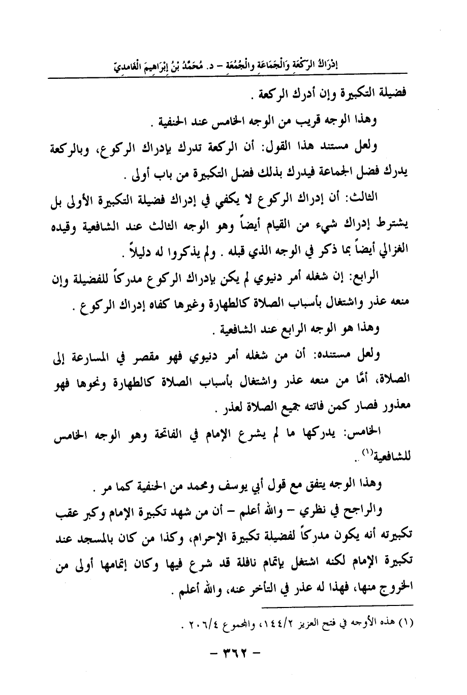 الرابع: إن شغله أمر دنيوي لم يكن بإدراك الركوع مدركاً للفضيلة وإن منعه عذر واشتغال بأسباب الصلاة كالطهارة وغيرها كفاه إدراك الركوع.