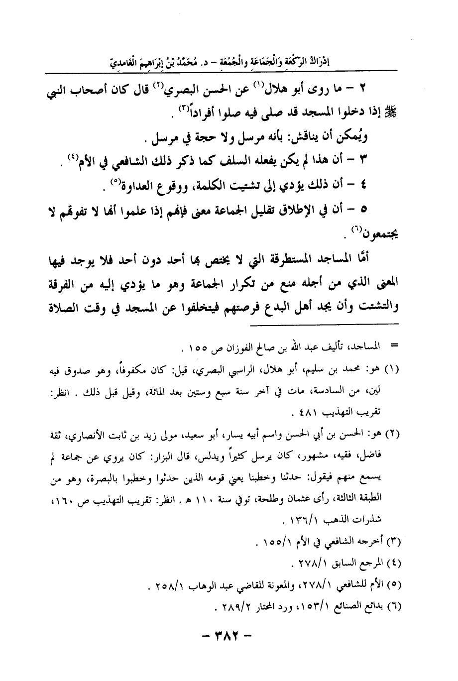 2 - ما روى أبو هلال (1) عن الحسن البصري (2) قال كان أصحاب النبي صلى الله عليه وسلم إذا دخلوا المسجد قد صلى فيه صلوا أفراداً (3) .