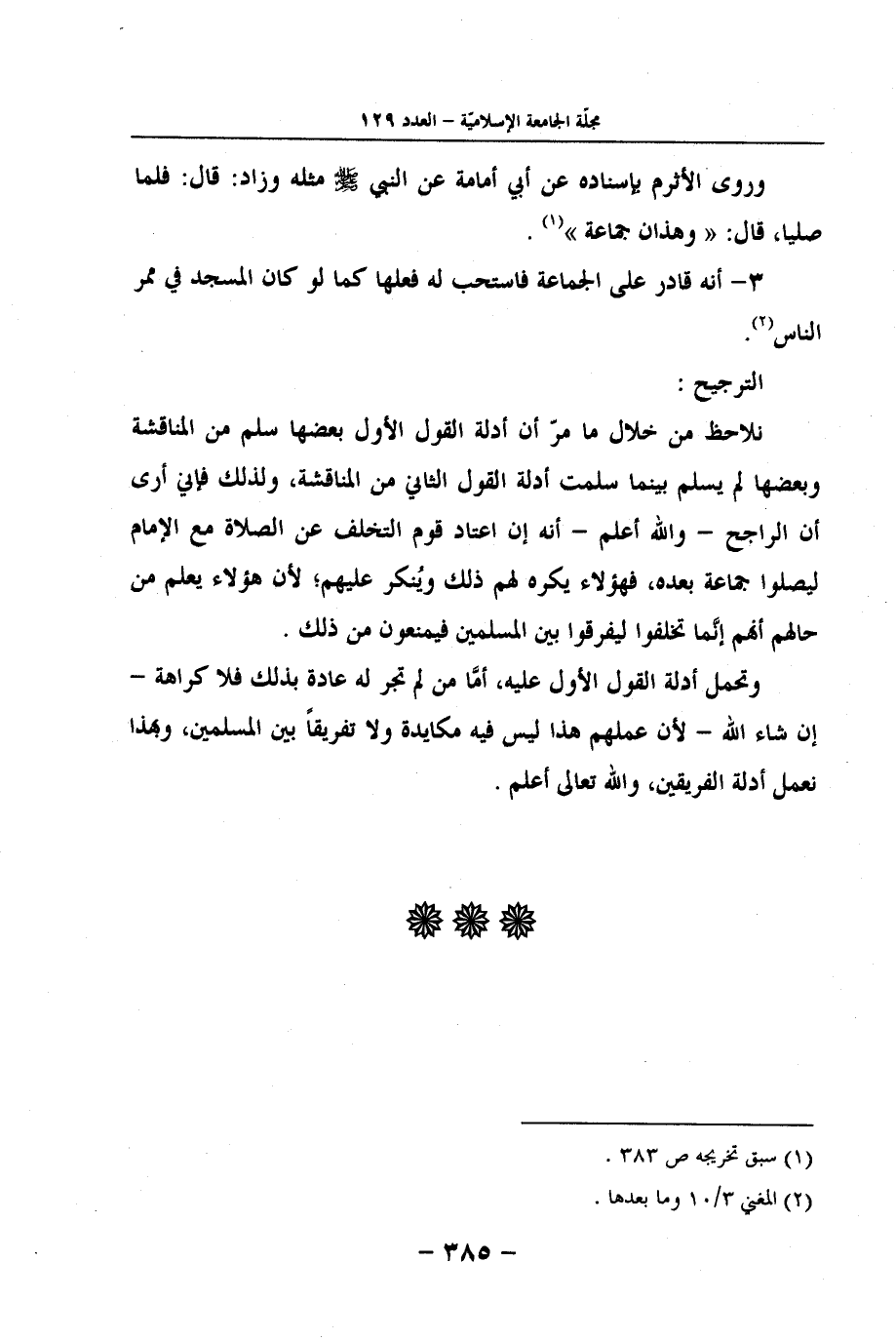 وتحمل أدلة القول الأول عليه، أمَّا من لم تجر له عادة بذلك فلا كراهة - إن شاء الله - لأن عملهم هذا ليس فيه مكايدة ولا تفريقاً بين المسلمين، وبهذا نعمل أدلة الفريقين، والله تعالى أعلم.