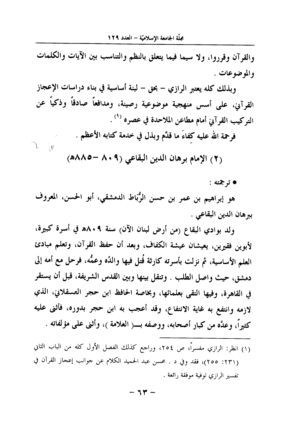 (2) الإِمَام برهَان الدّين البقاعي (809 - 885هـ)