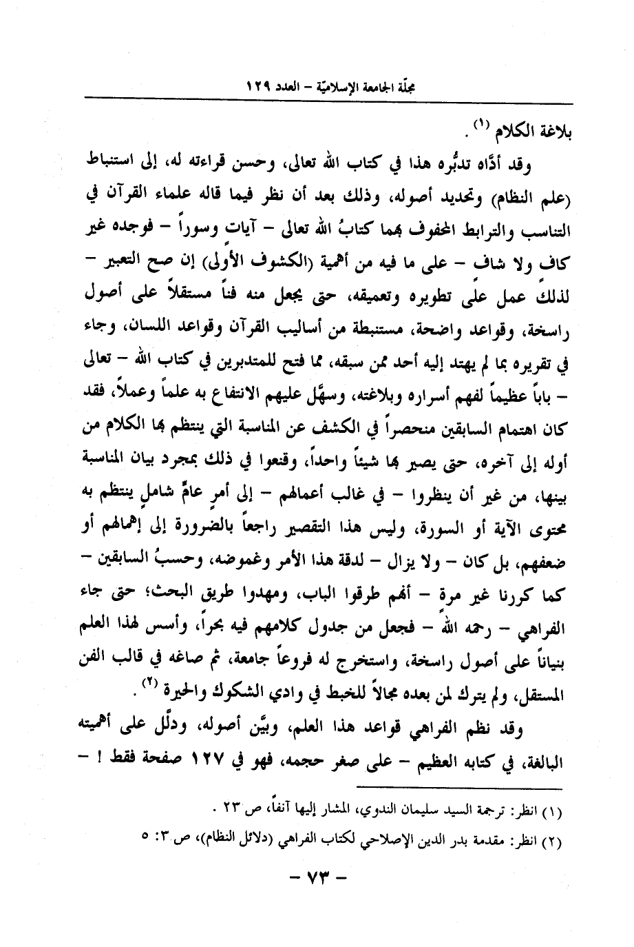 (2) انْظُر: مُقَدّمَة بدر الدّين الإصلاحي لكتاب الفراهي (دَلَائِل النظام) ، ص 3: 5