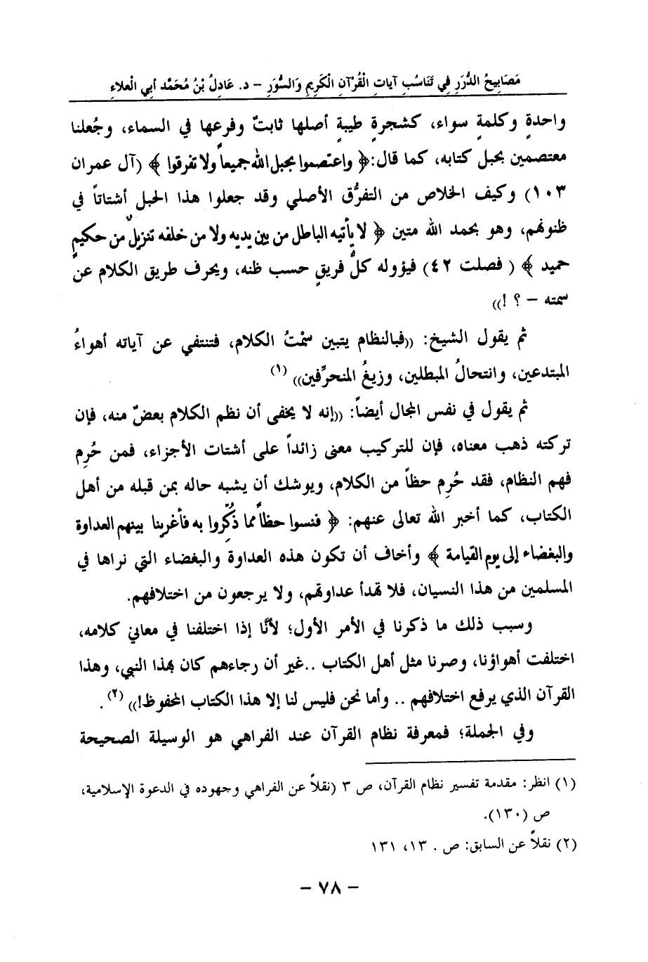 (1) انْظُر: مُقَدّمَة تَفْسِير نظام الْقُرْآن، ص 3 (نقلا عَن الفراهي وجهوده فِي الدعْوَة الإسلامية، ص (130) .