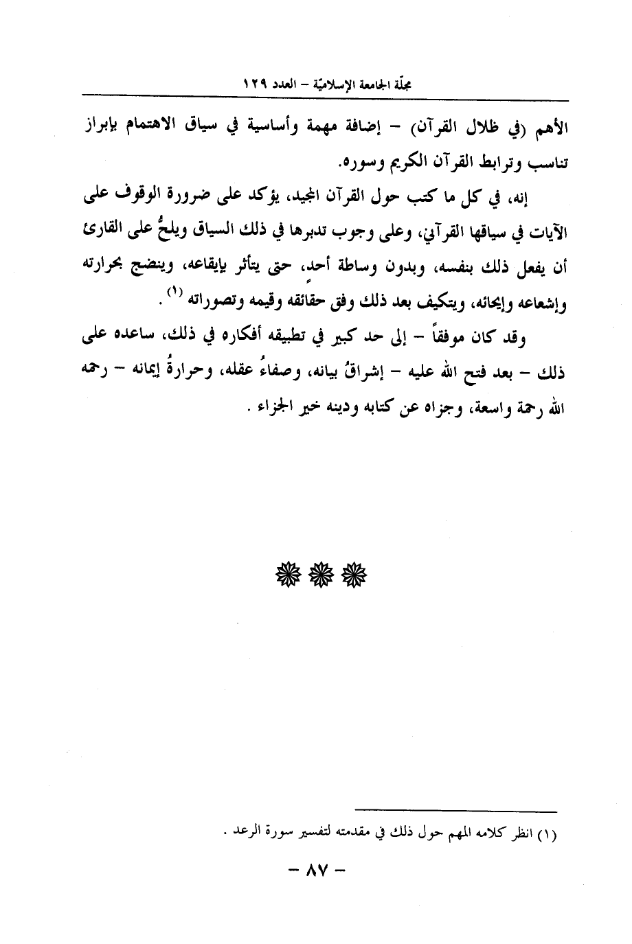 (1) انْظُر كَلَامه المهم حول ذَلِك فِي مقدمته لتفسير سُورَة الرَّعْد.