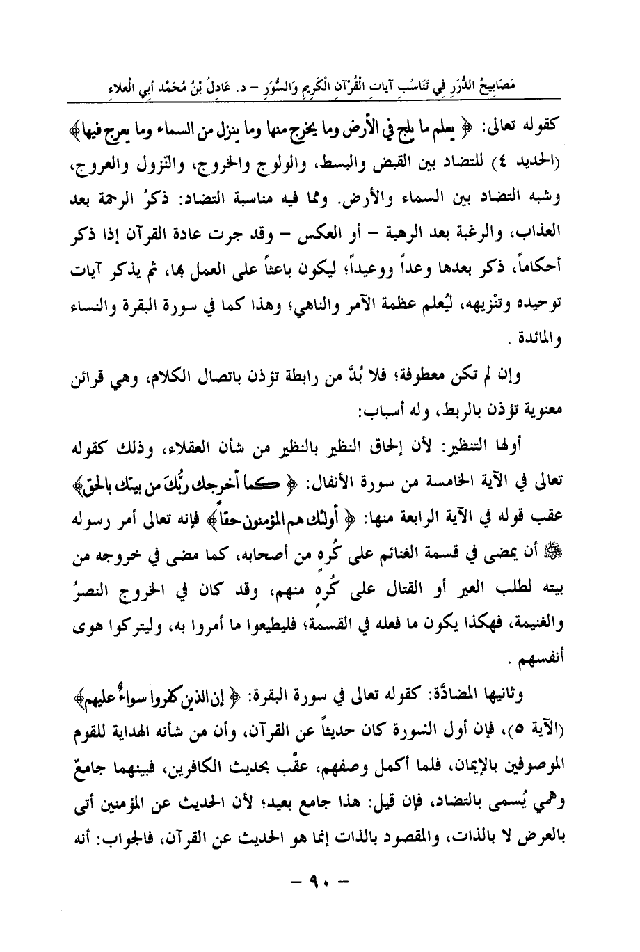 كتاب مصابيح الدرر في تناسب آيات القرآن الكريم والسور