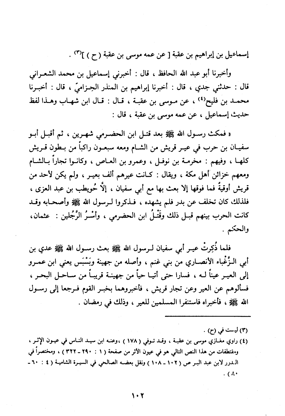 [ (4) ] راوي مَغَازِي مُوسَى بْنِ عُقْبَةَ، وقد توفي (178) ، وعنه ابن سيد الناس في عيون الإثر، ومقتطفات من هذا النص التالي هو في عيون الأثر من صفحة (1: 290- 322) ، ومختصرا في الدرر لابن عبد البرص (102- 108) ونقل بعضه الصالحي في السيرة الشامية (4: 60- 80) .