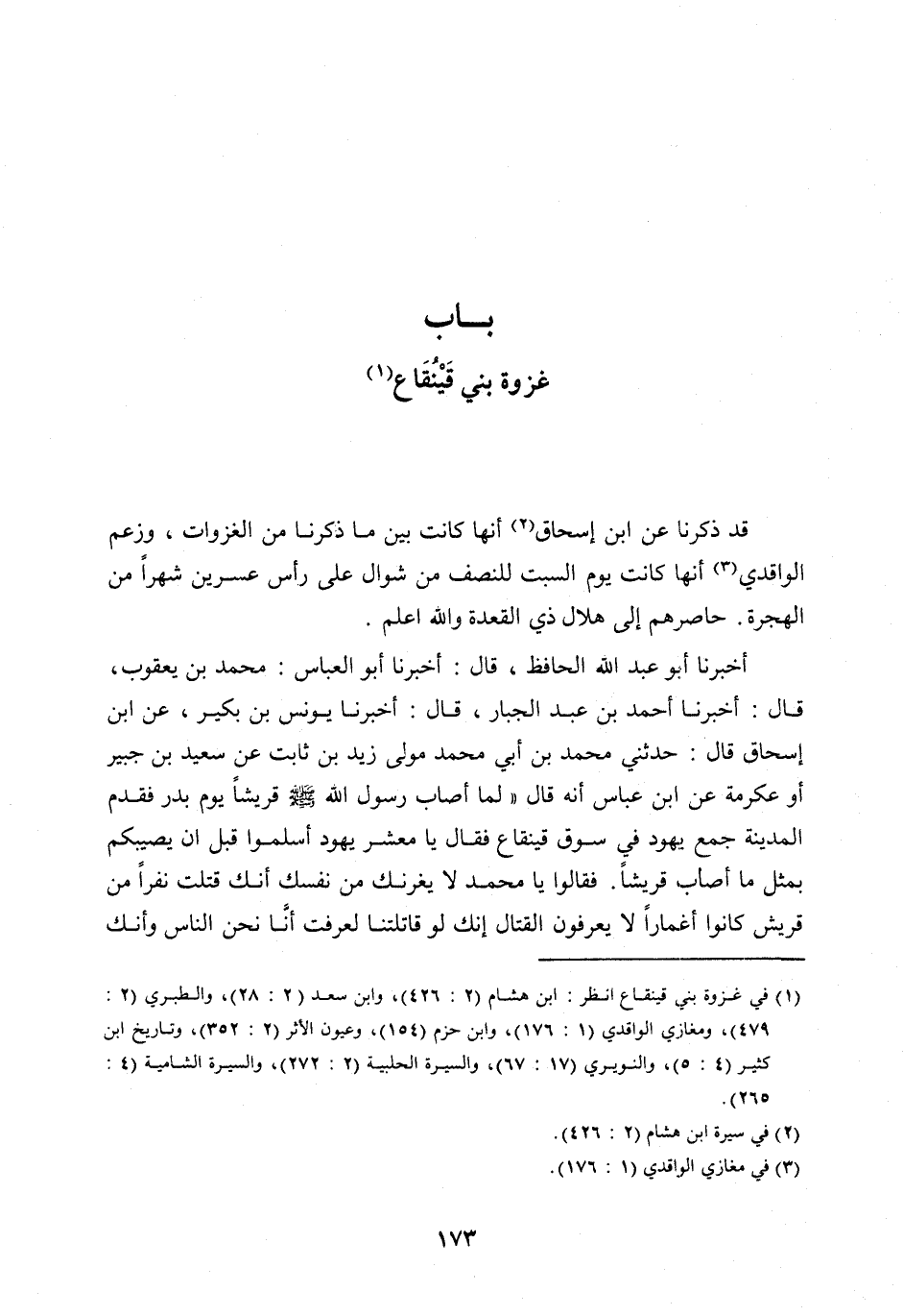 [ (1) ] في غزوة بني قينقاع انظر: ابن هشام (2: 426) ، وابن سعد (2: 28) ، والطبري (2: