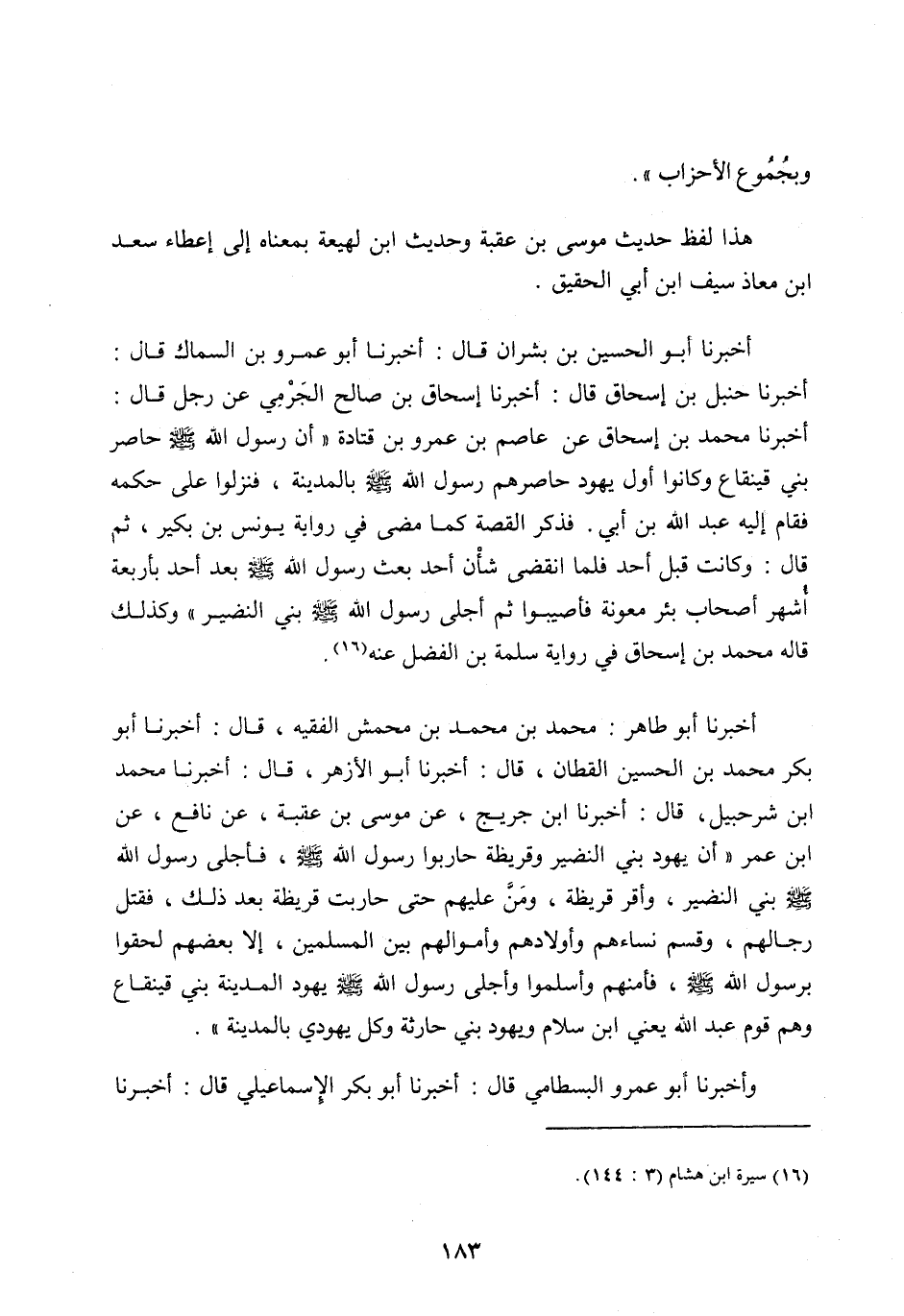 [ (16) ] سيرة ابن هشام (3: 144) .