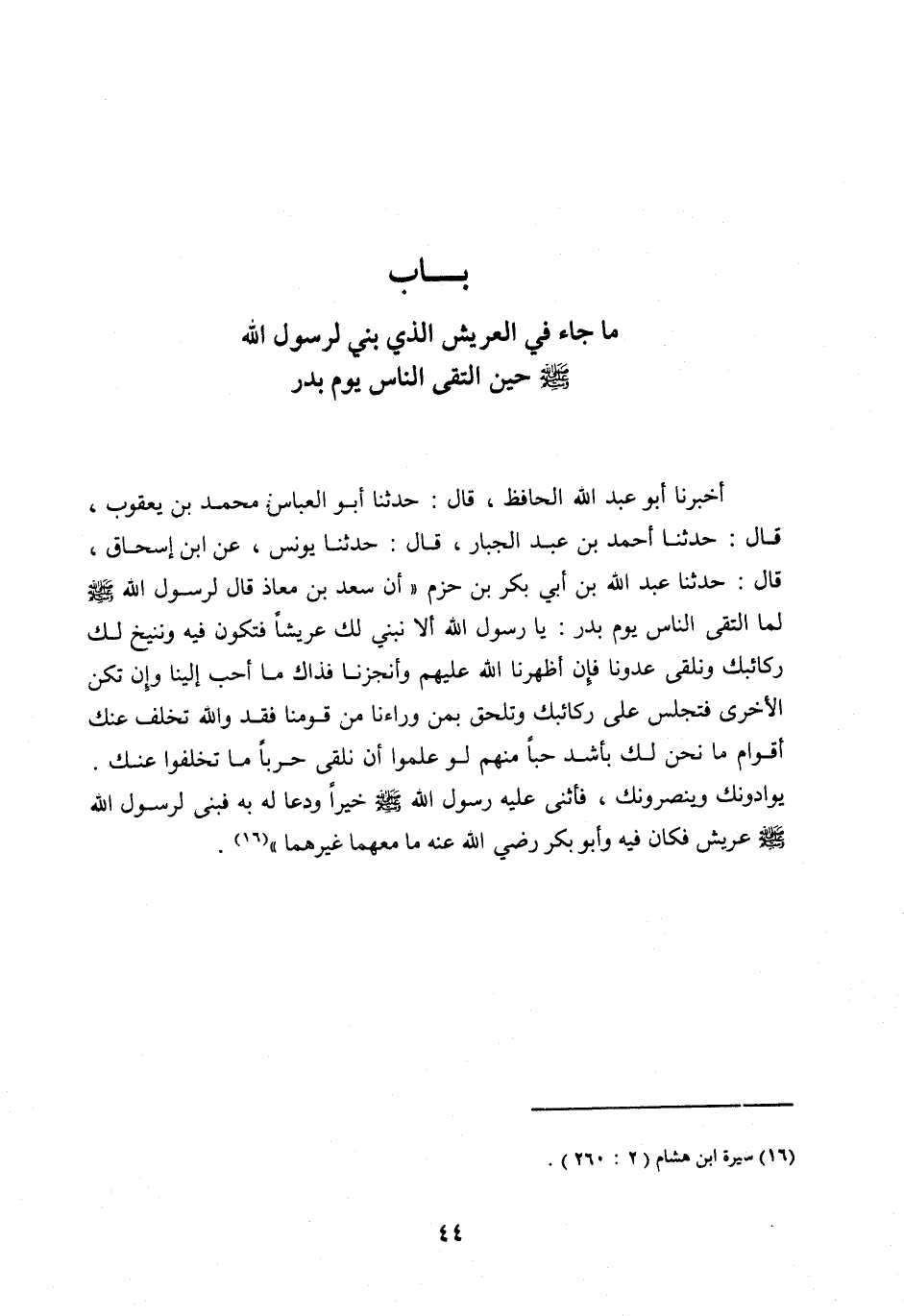 [ (16) ] سيرة ابن هِشَامٍ (2: 260) .