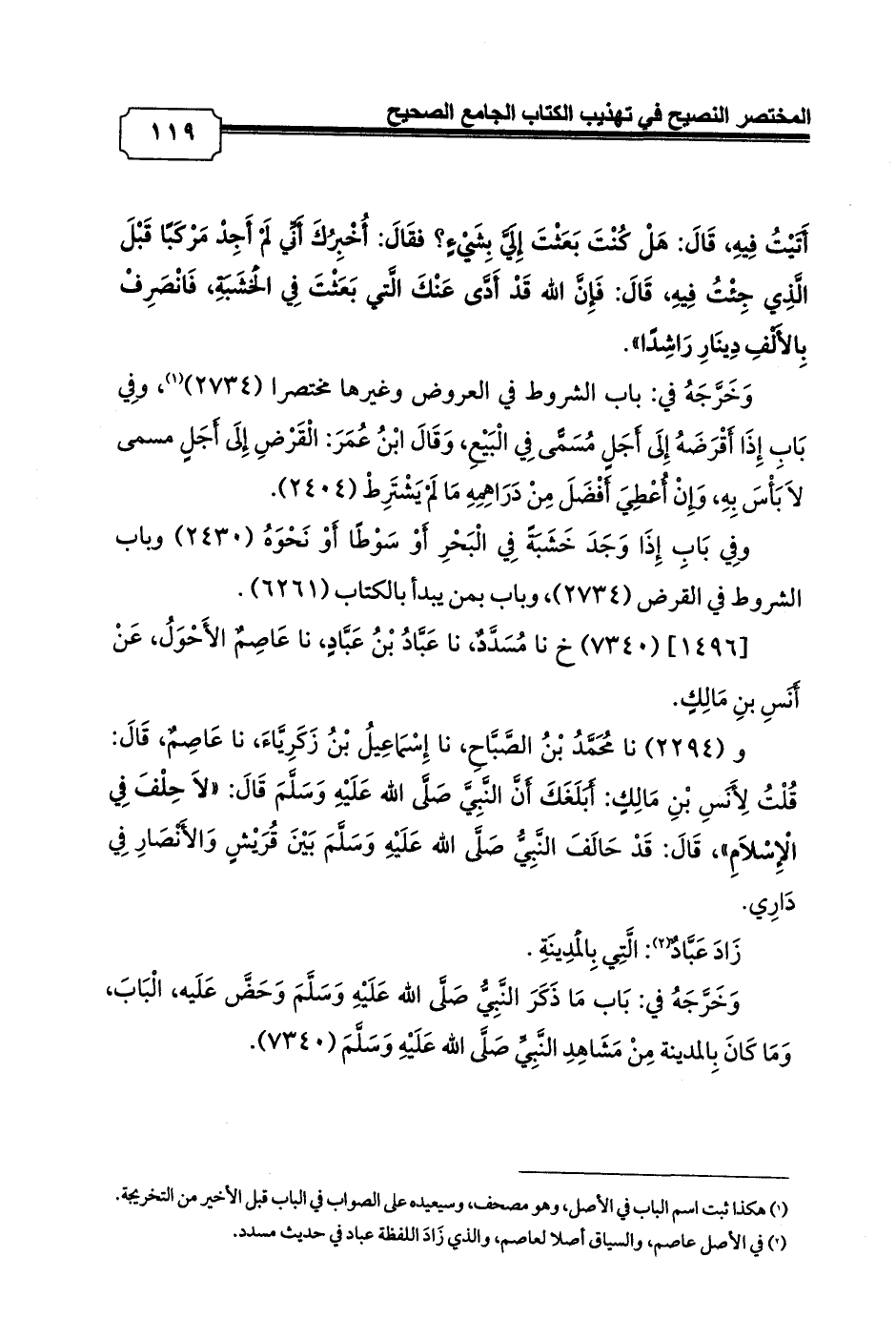 [1496] (7340) خ نا مُسَدَّدٌ، نا عَبَّادُ بْنُ عَبَّادٍ، نا عَاصِمٌ الأَحْوَلُ، عَنْ أَنَسِ بنِ مَالِكٍ.