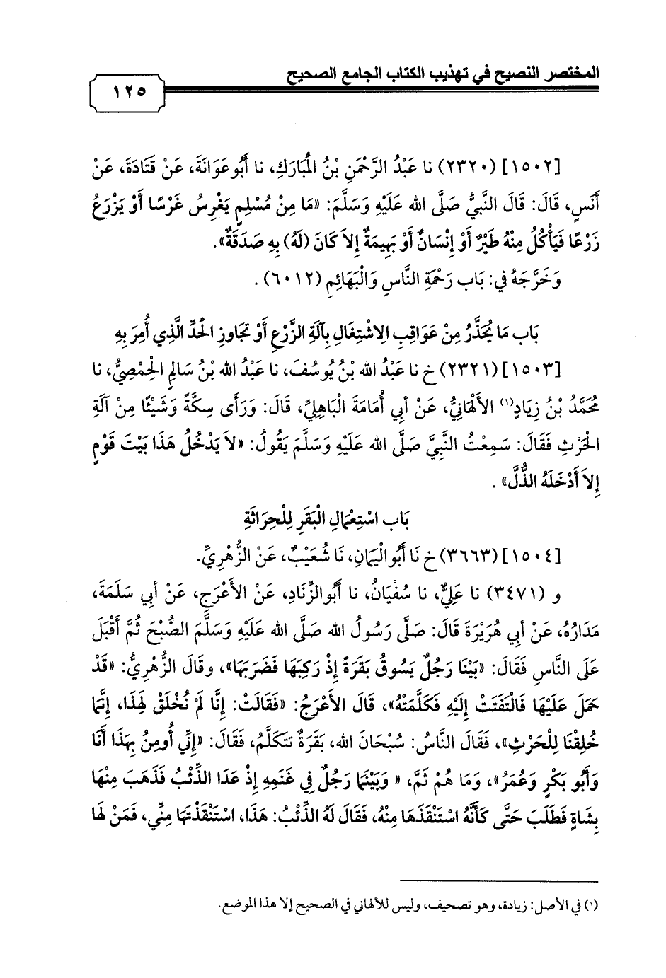 [1503] (2321) خ نا عَبْدُ الله بْنُ يُوسُفَ، نا عَبْدُ الله بْنُ سَالِمٍ الْحِمْصِيُّ، نا مُحَمَّدُ بْنُ زِيَادٍ (¬1) الأَلْهَانِيُّ، عَنْ أبِي أُمَامَةَ الْبَاهِلِيِّ، قَالَ: وَرَأَى سِكَّةً وَشَيْئًا مِنْ آلَةِ الْحَرْثِ فَقَالَ: سَمِعْتُ النَّبِيَّ صَلَّى الله عَلَيْهِ وَسَلَّمَ يَقُولُ: «لاَ يَدْخُلُ هَذَا بَيْتَ قَوْمٍ إِلاَ أَدْخَلَهُ الذُّلَّ».