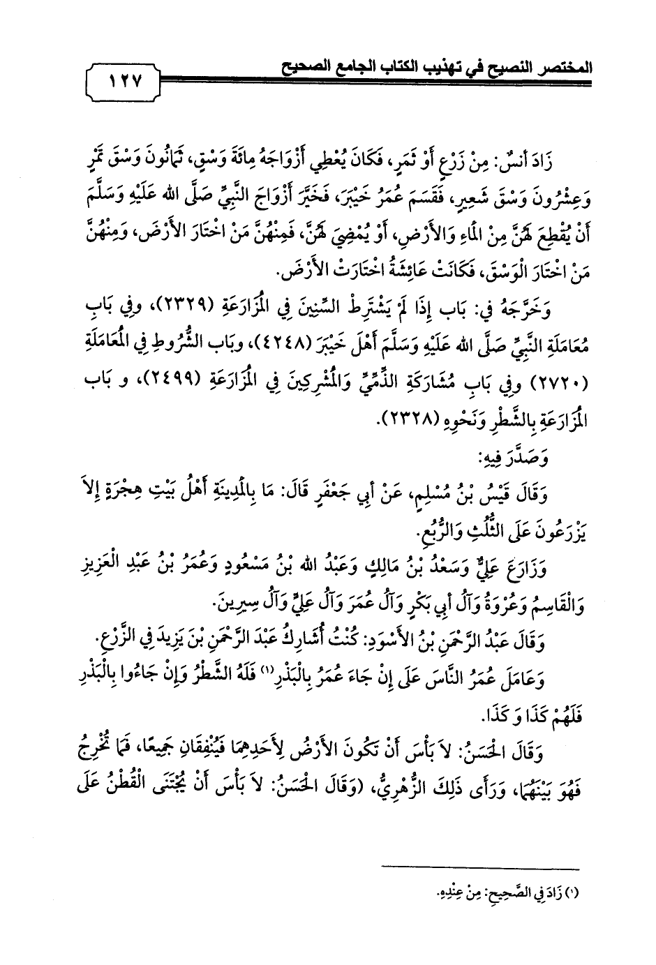 وَخَرَّجَهُ في: بَاب إِذَا لَمْ يَشْتَرِطْ السِّنِينَ فِي الْمُزَارَعَةِ (2329) , وفِي بَابِ مُعَامَلَةِ النَّبِيِّ صَلَّى الله عَلَيْهِ وَسَلَّمَ أَهْلَ خَيْبَرَ (4248) , وبَاب الشُّرُوطِ فِي الْمُعَامَلَةِ (2720) وفِي بَابِ مُشَارَكَةِ الذِّمِّيِّ وَالْمُشْرِكِينَ فِي الْمُزَارَعَةِ (2499) , وبَاب الْمُزَارَعَةِ بِالشَّطْرِ وَنَحْوِهِ (2328).