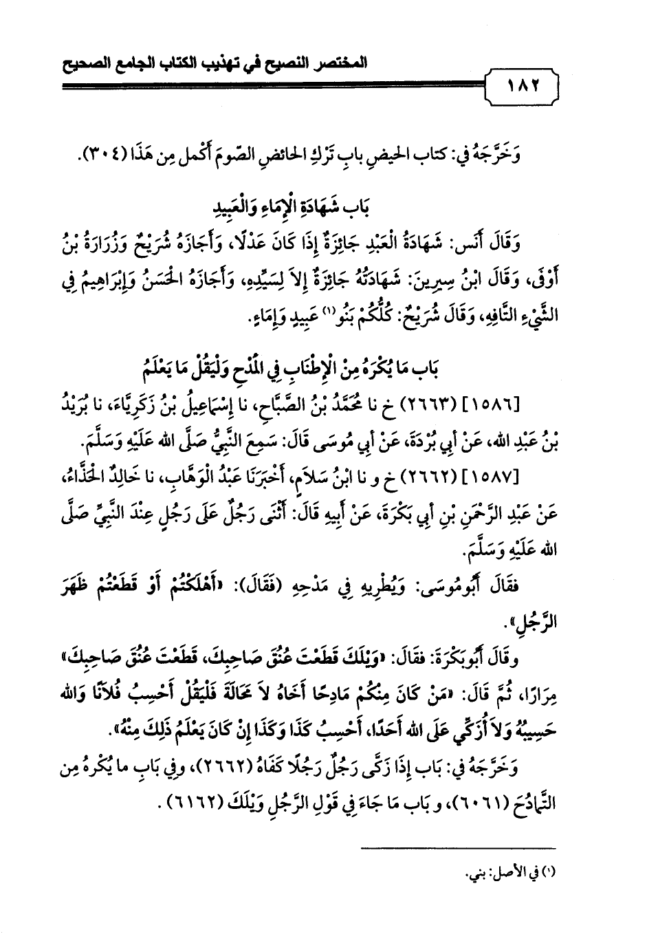 [1587] (2662) خ ونا ابْنُ سَلاَمٍ، أَخْبَرَنَا عَبْدُ الْوَهَّابِ، نا خَالِدٌ الْحَذَّاءُ، عَنْ عَبْدِ الرَّحْمَنِ بْنِ أبِي بَكْرَةَ، عَنْ أَبِيهِ قَالَ: أَثْنَى رَجُلٌ عَلَى رَجُلٍ عِنْدَ النَّبِيِّ صَلَّى الله عَلَيْهِ وَسَلَّمَ.