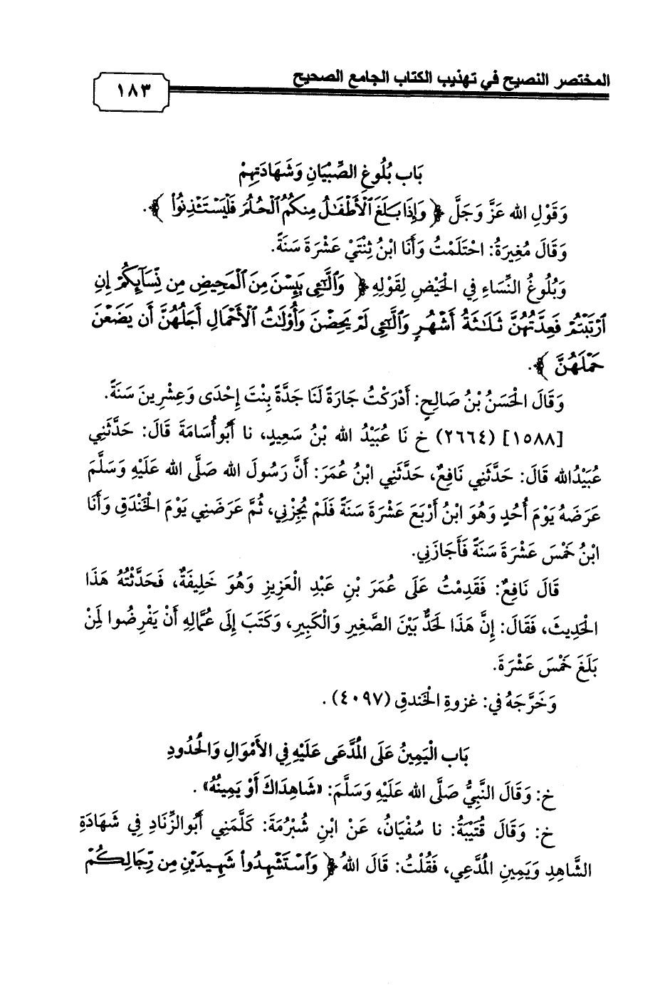 بَاب بُلُوغِ الصِّبْيَانِ وَشَهَادَتِهِمْ
