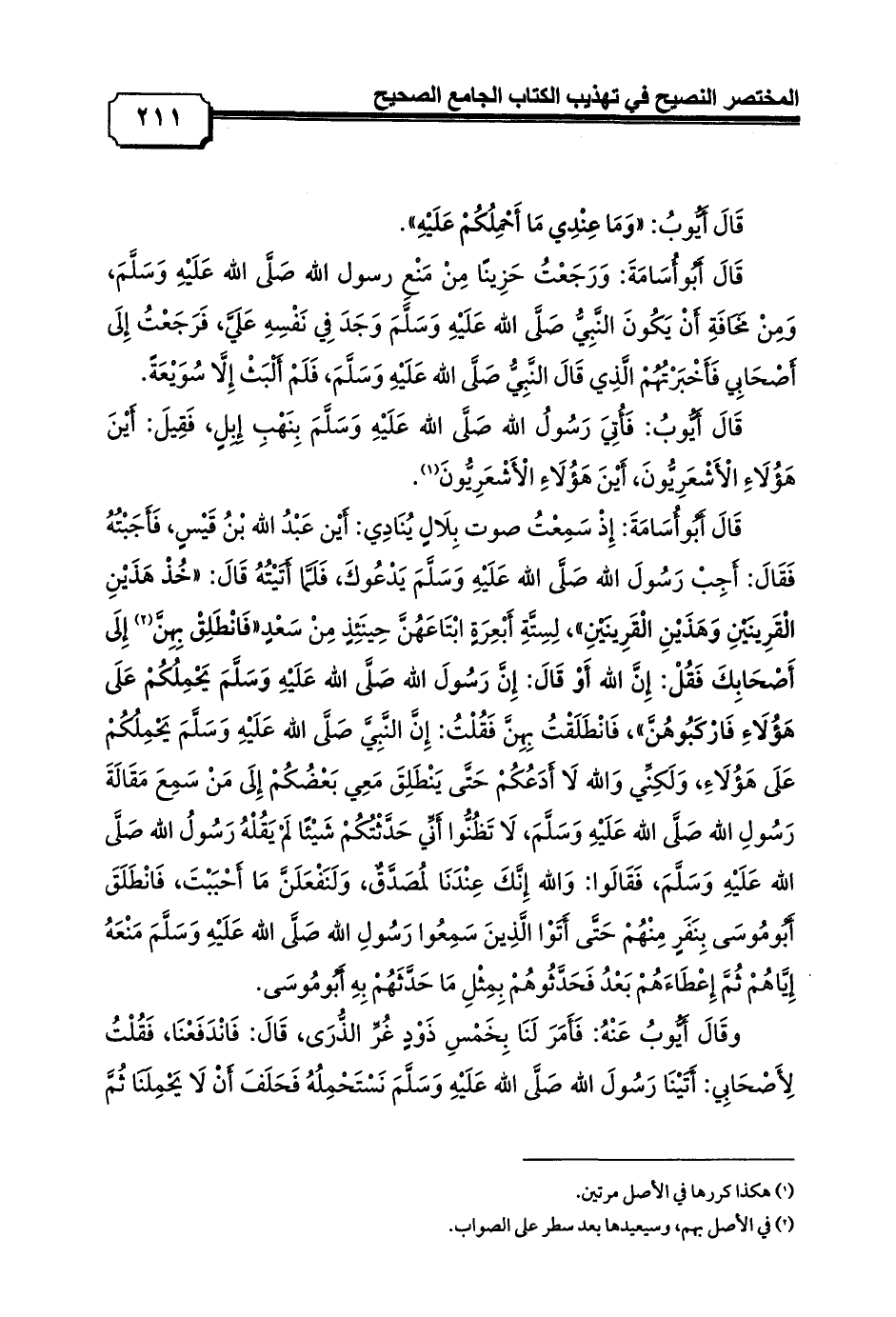 قَالَ أَيُّوبُ: فَأُتِيَ رَسُولُ الله صَلَّى الله عَلَيْهِ وَسَلَّمَ بِنَهْبِ إِبِلٍ، فَقِيلَ: أَيْنَ هَؤُلَاءِ الْأَشْعَرِيُّونَ، أَيْنَ هَؤُلَاءِ الْأَشْعَرِيُّونَ (¬1).
