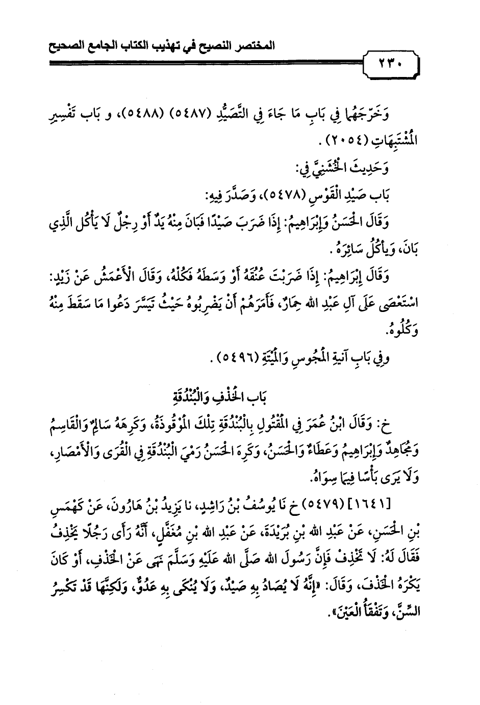 بَاب صَيْدِ الْقَوْسِ (5478) , وَصَدَّرَ فِيهِ: