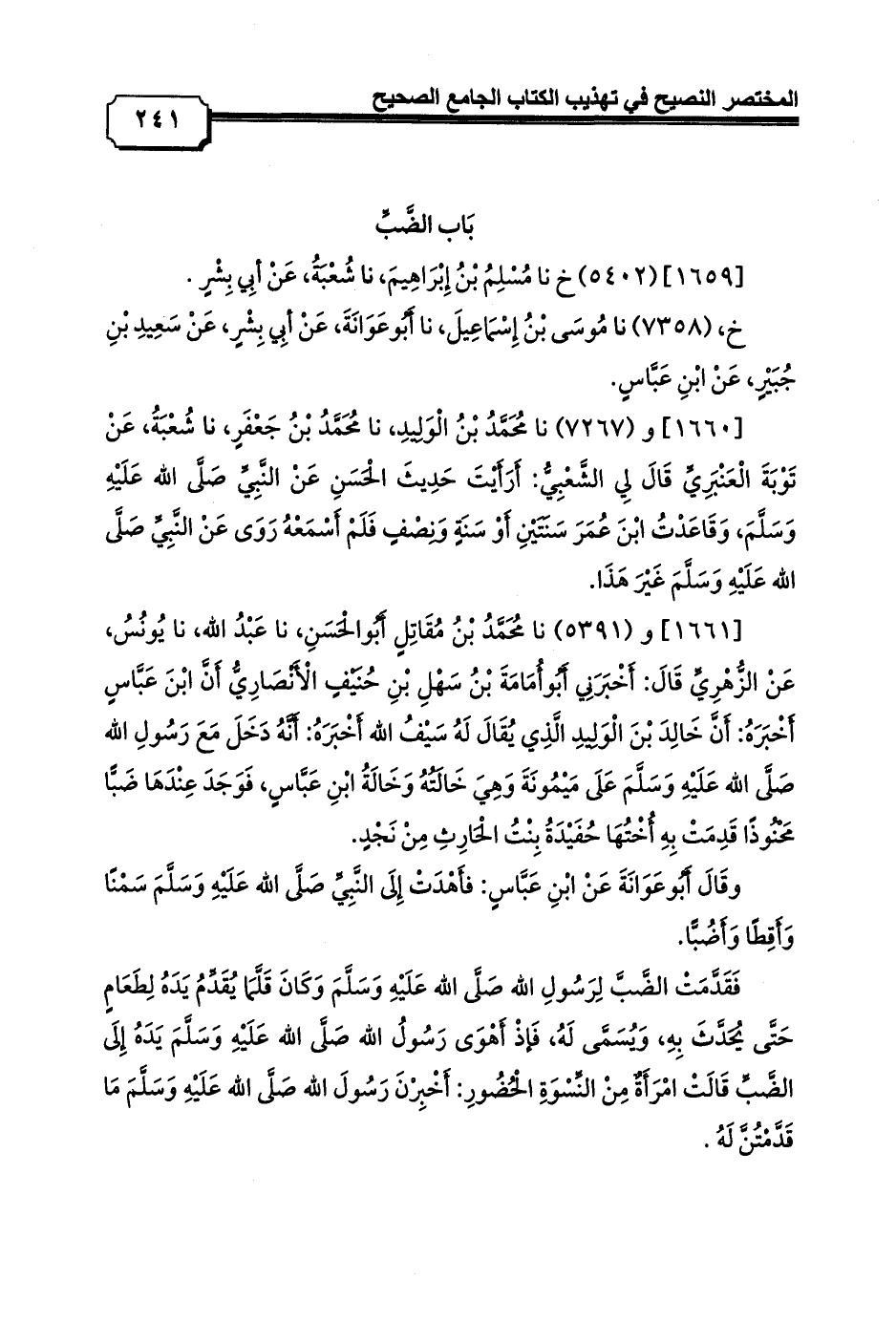 [1661] و (5391) نا مُحَمَّدُ بْنُ مُقَاتِلٍ أَبُوالْحَسَنِ، نا عَبْدُ الله، نا يُونُسُ، عَنْ الزُّهْرِيِّ قَالَ: أَخْبَرَنِي أَبُوأُمَامَةَ بْنُ سَهْلِ بْنِ حُنَيْفٍ الْأَنْصَارِيُّ أَنَّ ابْنَ عَبَّاسٍ أَخْبَرَهُ: أَنَّ خَالِدَ بْنَ الْوَلِيدِ الَّذِي يُقَالَ لَهُ سَيْفُ الله أَخْبَرَهُ: أَنَّهُ دَخَلَ مَعَ رَسُولِ الله صَلَّى الله عَلَيْهِ وَسَلَّمَ عَلَى مَيْمُونَةَ وَهِيَ خَالَتُهُ وَخَالَةُ ابْنِ عَبَّاسٍ، فَوَجَدَ عِنْدَهَا ضَبًّا مَحْنُوذًا قَدِمَتْ بِهِ أُخْتُهَا حُفَيْدَةُ بِنْتُ الْحَارِثِ مِنْ نَجْدٍ.