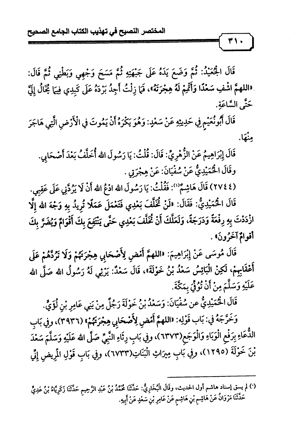 (¬1) لم يسق إسناد هاشم أول الحديث، وقَالَ الْبُخَارِيُّ: حَدَّثَنَا مُحَمَّدُ بْنُ عَبْدِ الرَّحِيمِ حَدَّثَنَا زَكَرِيَّاءُ بْنُ عَدِيٍّ حَدَّثَنَا مَرْوَانُ عَنْ هَاشِمِ بْنِ هَاشِمٍ عَنْ عَامِرِ بْنِ سَعْدٍ عَنْ أَبِيهِ.
