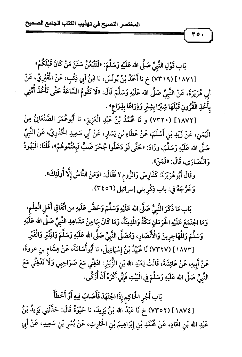 بَاب قَوْلِ النَّبِيِّ صَلَّى الله عَلَيْهِ وَسَلَّمَ: «لَتَتْبَعُنَّ سَنَنَ مَنْ كَانَ قَبْلَكُمْ»