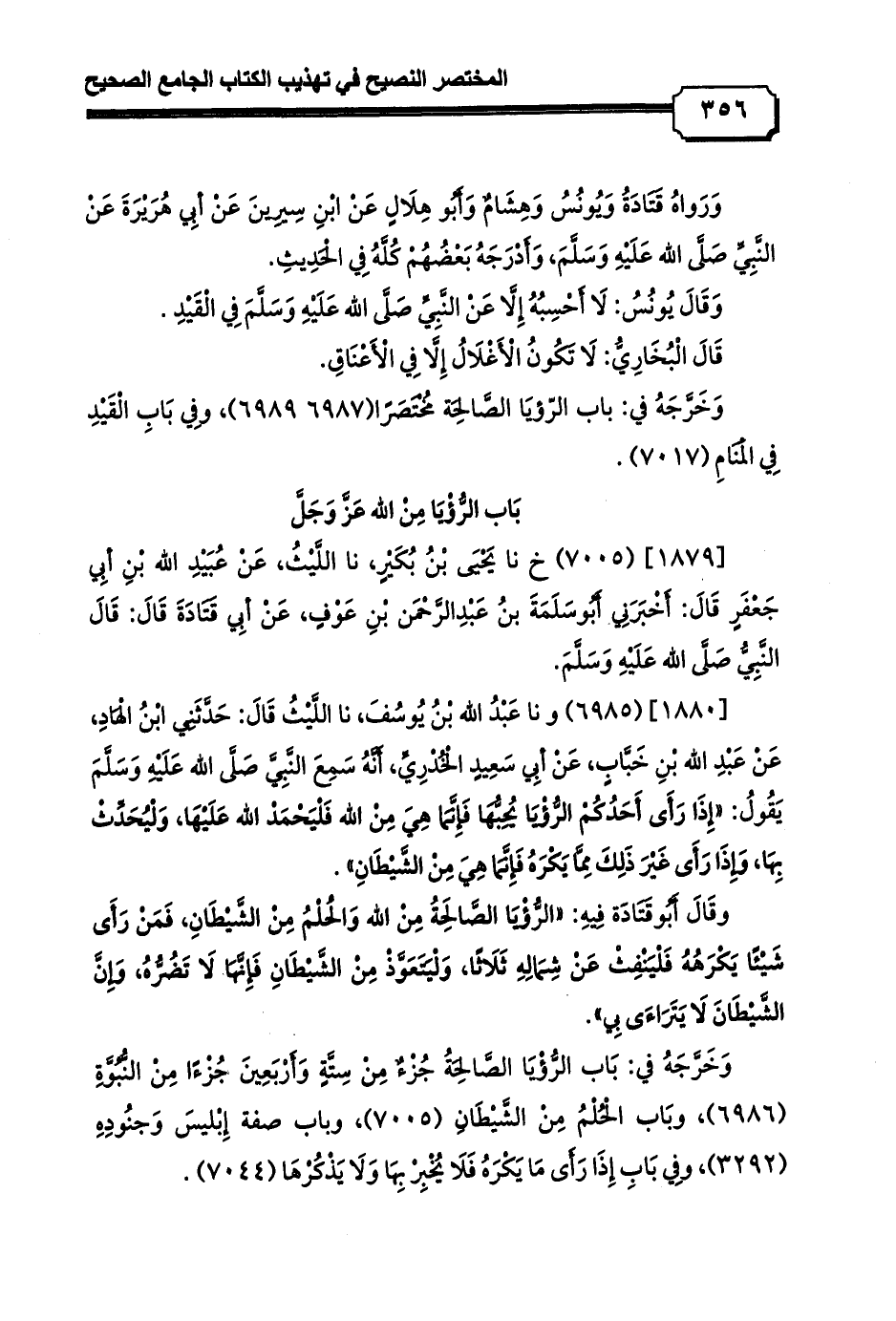 وَخَرَّجَهُ في: بَاب الرُّؤْيَا الصَّالِحَةُ جُزْءٌ مِنْ سِتَّةٍ وَأَرْبَعِينَ جُزْءًا مِنْ النُّبُوَّةِ (6986) , وبَاب الْحُلْمُ مِنْ الشَّيْطَانِ (7005) , وباب صفة إِبْليسَ وَجنُودِهِ (3292) , وفِي بَابِ إِذَا رَأَى مَا يَكْرَهُ فَلَا يُخْبِرْ بِهَا وَلَا يَذْكُرْهَا (7044).