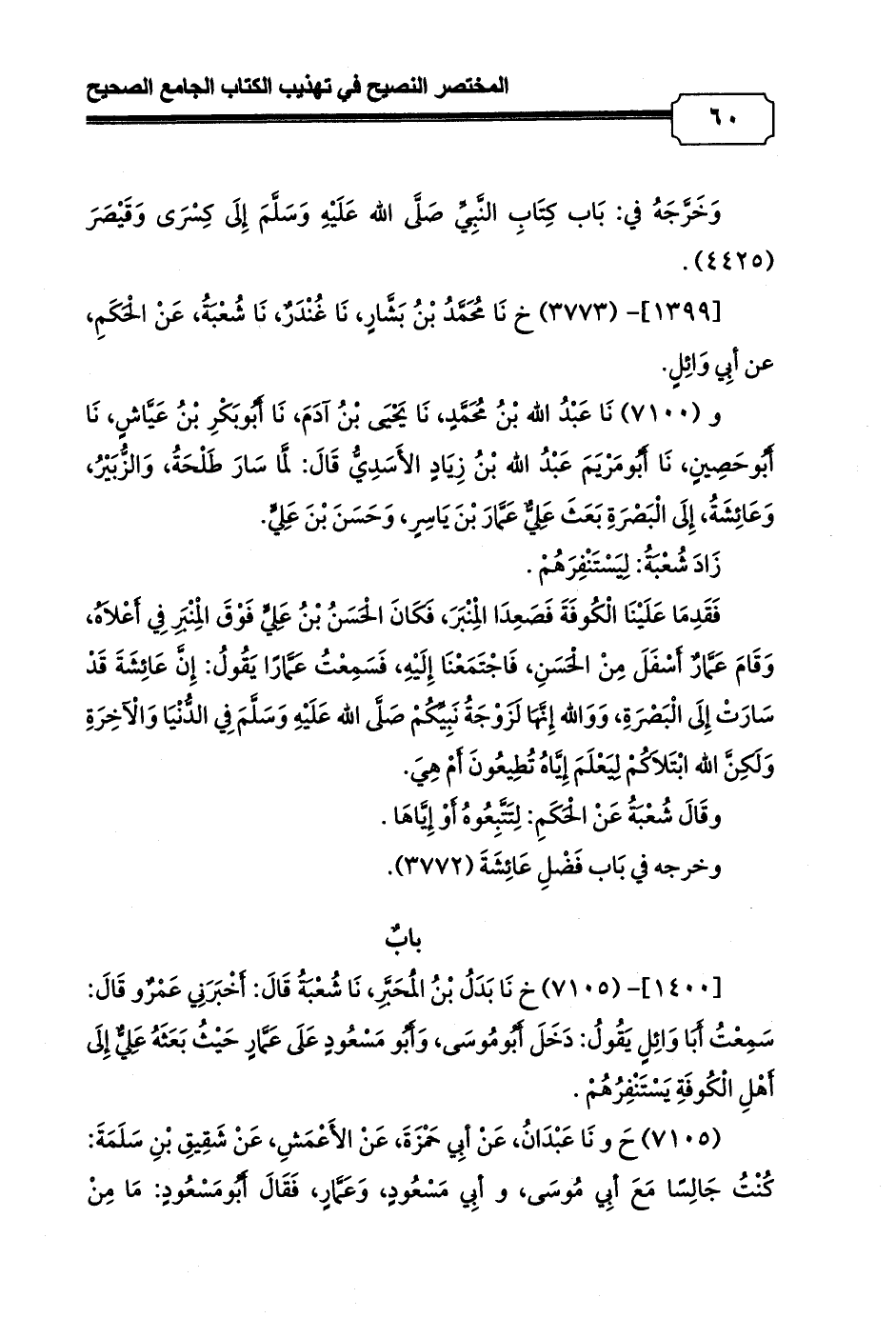 [1399]- (3773) خ نَا مُحَمَّدُ بْنُ بَشَّارٍ, نَا غُنْدَرٌ, نَا شُعْبَةُ, عَنْ الْحَكَمِ, عن أبِي وَائِلٍ.