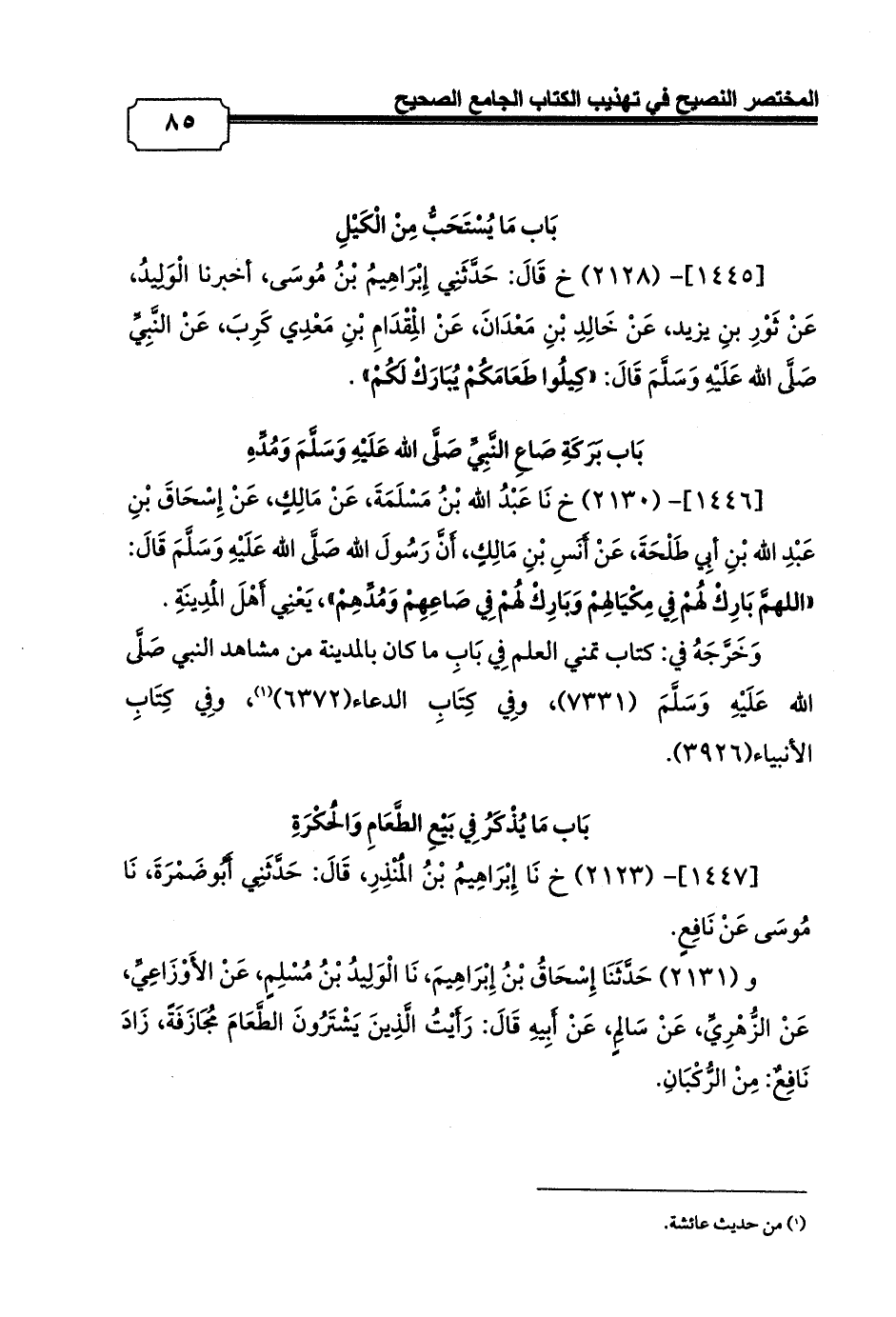 [1445]- (2128) خ قَالَ: حَدَّثَنِي إِبْرَاهِيمُ بْنُ مُوسَى, أخبرنا الْوَلِيدُ, عَنْ ثَوْرِ بنِ يزيد, عَنْ خَالِدِ بْنِ مَعْدَانَ, عَنْ الْمِقْدَامِ بْنِ مَعْدِي كَرِبَ, عَنْ النَّبِيِّ صَلَّى الله عَلَيْهِ وَسَلَّمَ قَالَ: «كِيلُوا طَعَامَكُمْ يُبَارَكْ لَكُمْ».