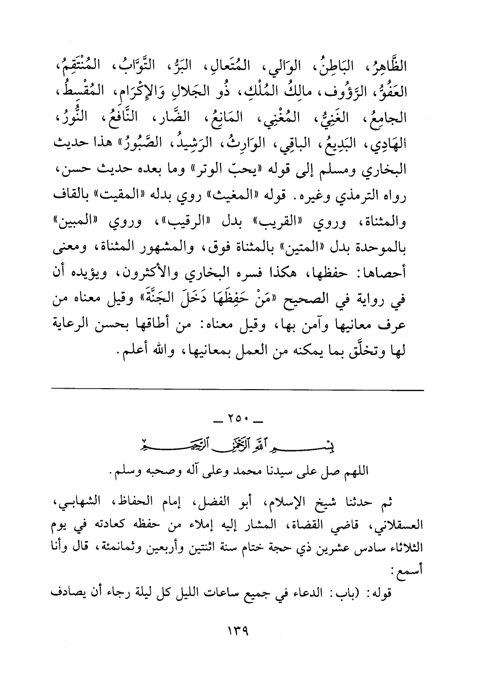 ثم حدثنا شيخ الإسلام، أبو الفضل، إمام الحفاظ، الشهابي، العسقلاني، قاضي القضاة، المشار إليه إملاء من حفظه كعادته في يوم الثلاثاء سادس عشرين ذي حجة ختام سنة اثنتين وأربعين وثمانمئة، قال وأنا أسمع: