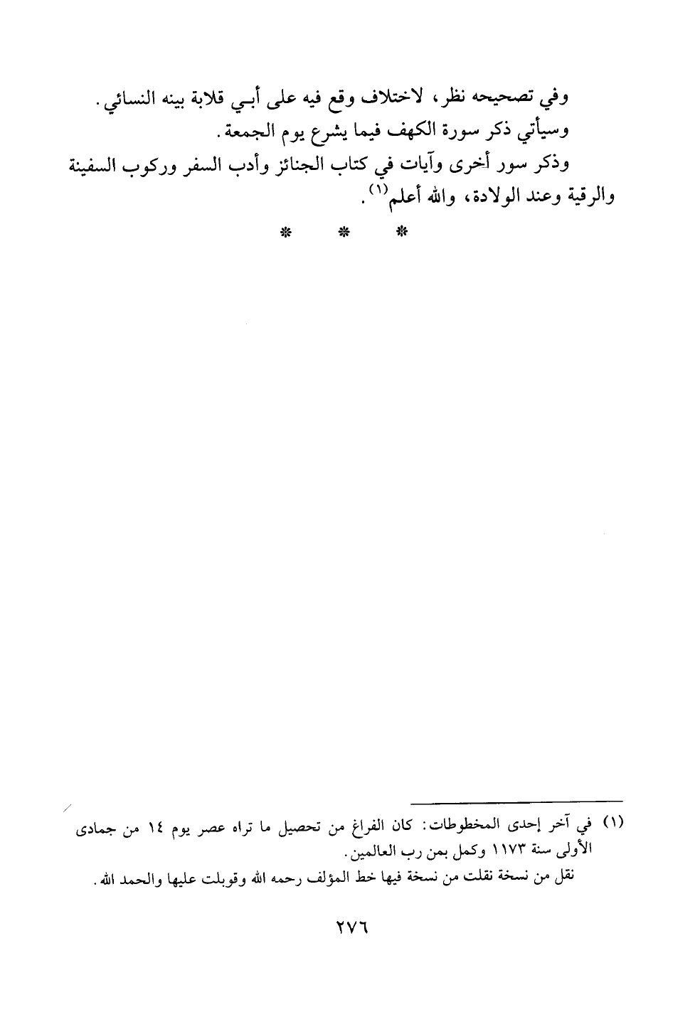 وذكر سور أخرى وآيات في كتاب الجنائز وأدب السفر وركوب السفينة والرقية وعند الولادة، والله أعلم.